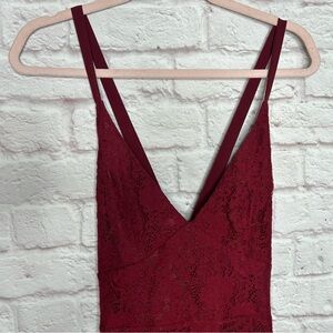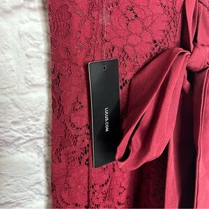 Lulus Love Like You Mean It Wine Red Backless Lace Midi Dress NWT