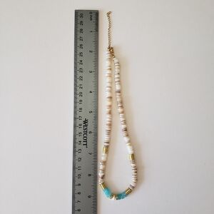shell beaded necklace with blue stone and gold tone hardware, Fashion, New, please check out all pictures, Thank you.