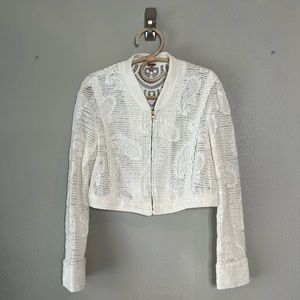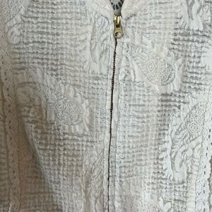 Free People White Lace Cropped Jacket Full Zipper Jacket Size Small