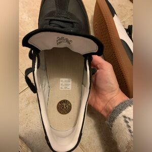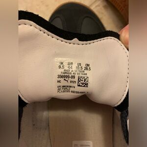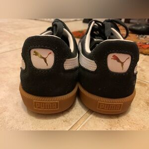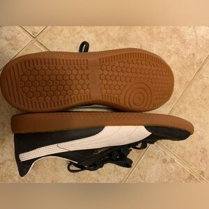 Stylish Puma Super Liga shoes. Black and white design. Comfortable fit.