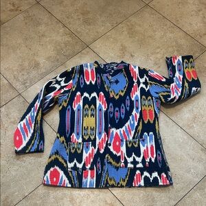 Lightweight blouse with fabulous JOHNNY WAS embroidery. Measurements in photos. Note! Fabric is somewhat sheer.. I had to hold it up to the light! see last photo