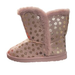 Girls Winter Boots Sz 5 Flower Rose Gold Metallic