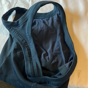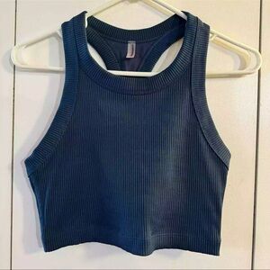 Free People Movement Game Time Blue Racerback Ribbed Cami Athletic Tank Top Sz M EUC