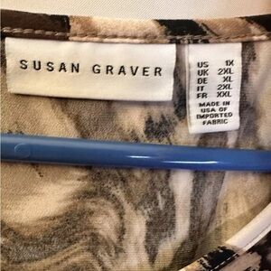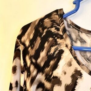 Susan Graver Asymmetrical Top Women's 1X Liquid Knit Animal Print TP-1925