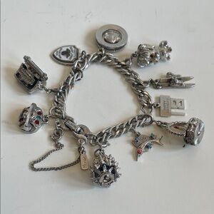 This is an interested and beautiful unique bracelet. It was a little hard to research but found out it is Book Chain Style in the Victorian Revival Style and brass with Patine. The two styles of pink glass jewels are so unique and pretty. This piece is in good vintage condition and does have some normal ware. Also the clasp is in good working condition.
