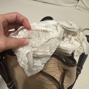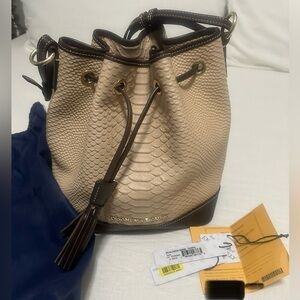 Limited Edition Dooney and Bourke drawstring bucket bag in alligator. Perfect condition, no stains, non smoker, includes original tags, registration card (not registered), dust bag, Dooney and Bourke tissue paper.