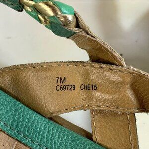 Women's T Strap Sandals Turquoise Gold Braided 7 M