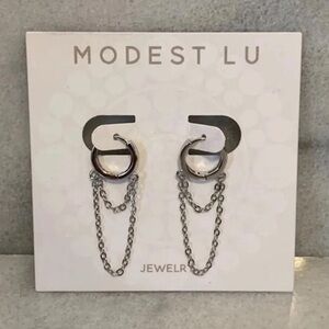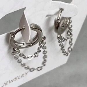 Sterling Silver Layered Chain Huggie Hoop Earrings Brand New