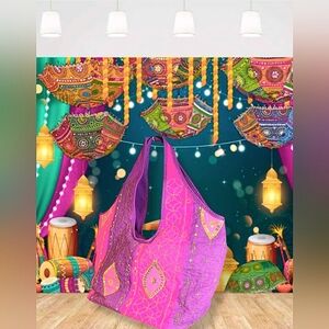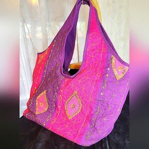 UNIQUE HAND MADE HOBO BOHO PINK AND PURPLE SEQUINS ACCENT TOTE MINT CONDITION