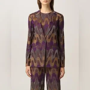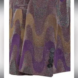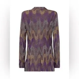 M MISSONI PURPLE ZIGZAG Metallic Blazer Jacket with Metallic Fiber