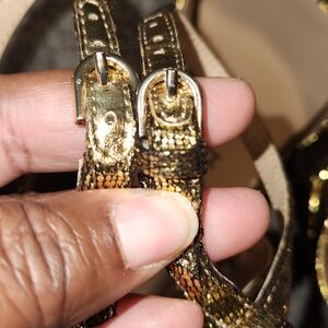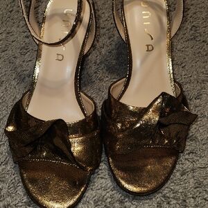 unisa golden metallic strap heel