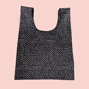 The bags fold into a small rectangle for storage and expand into a roomy shopping bag. A perfect substitute for plastic reusable bags.