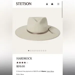 Have a stetson hardrock in the color bone that was only worn once. Did get 2 spots on it but can easily be cleaned. I never find the occasion to rewear so figured I’d let it go. Size medium. Open to offers