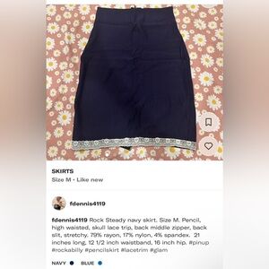 All info in pictures. Size medium. High waisted pencil skirt. Skull lace trim.