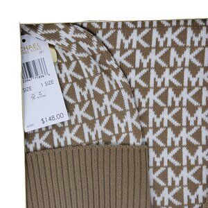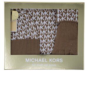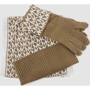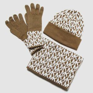 Michael Kors Women's 3 Piece Set Scarf Hat and Gloves Set Camel/Derby Grey