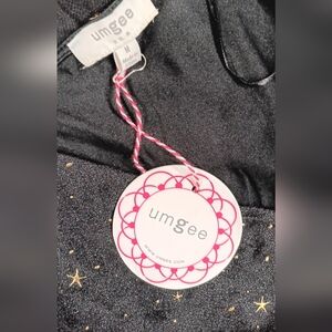 UMGEE Peasant Blouse Ballon Sheer Sleeve Plunge Neck Casual Top Gold Accent Sz M