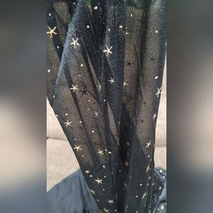 The blouse is a size M, but material tag states size small. Has a unique design with stars pattern on the sheer sleeves, making it a standout piece. This top is perfect for summer, fall, or spring, and it's suitable for women who want to have a hippie or bohemian-themed fashion. This product is listed under Women's Clothing, Tops and is a new item with tags. Please see photos for details. 40 inch chest. 24 in sleeve length, and 23 inch front length of top and 28 inches long in the back.