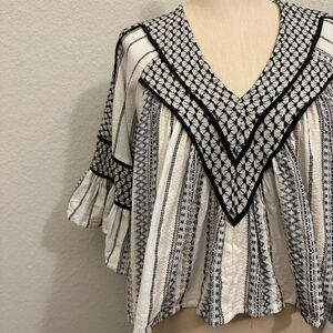 FREE PEOPLE Running On A Dream Top Womens S Multicolor Bell Sleeve Boho Peasant