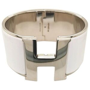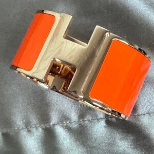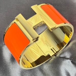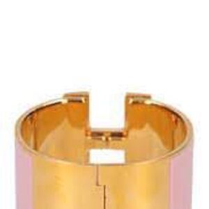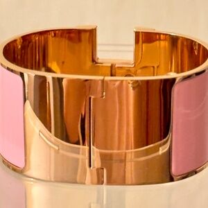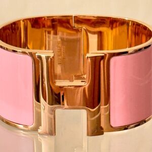NEW HÈRMES Extra Wide Pink Enamel Rose Gold Plated H Clic Bracelet Bangel