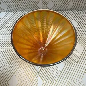Vintage Marigold Carnival Glass Footed Dish