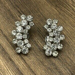 Add a touch of retro glamour to your outfit with these vintage Weiss clip-on earrings. The stunning rhinestone design features a cluster setting style that sparkles in the light. The earrings are 1.5 inches in length and have a clip-on closure for easy wear.