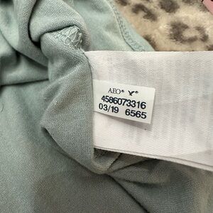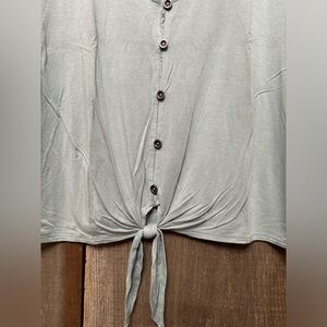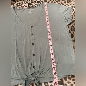 American Eagle Soft & Sexy Button Front Tie Knot T-Shirt in Washed Green Gray M