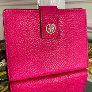 Incredible condition Icona Clip Wallet from Salvatore Ferragamo. Retail is $795 and this comes with original booklet and tags from the real real. Leather is stunning and supple calfskin pebbles leather. Only sign of use is some minor scratching on gold hardware. Comes with hook in ID holder in matching leather.