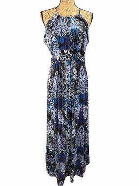 Lauren Conrad NWOT light blue and metallic gold floral pullover dress Size Large