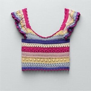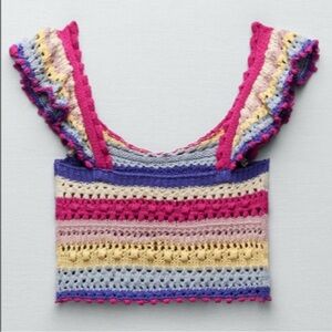 🌟HOST PICK 6/25!🌟 NWT rare HTF Zara multicolor ruffle knit crochet top! Size S