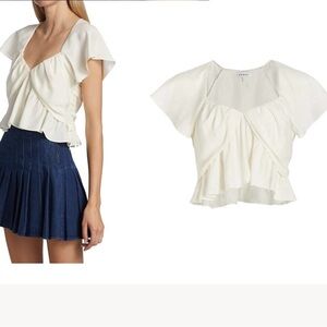 FRAME DENIM SHIRRED FLOUNCE TOP - OFF WHITE $369.00 size L