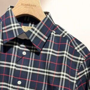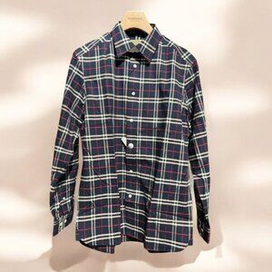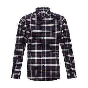 Check print cotton shirt, front pocket, button closure, long cuffed sleeves.