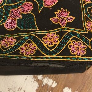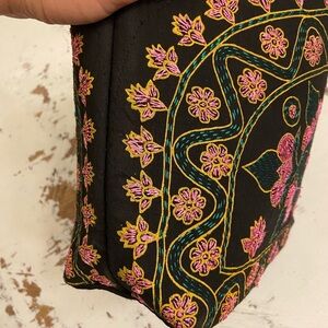 Beautiful vintage purse with embroidered pink flowers. Pouch zipper inside.