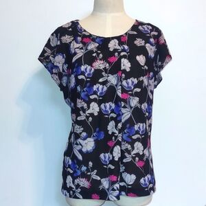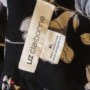 Liz Claiborne Career Short Sleeve Floral Top Size XL Black White Pink Blue