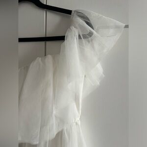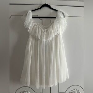 Two tiers of ruched white tulle create a ruffle top and voluminous mini skirt, a fitted bodice underneath it all keeps you feeling secure at the ball.