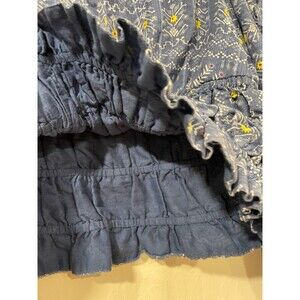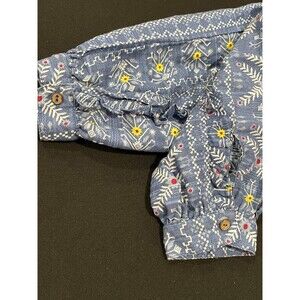 Anthropologie "Forever That Girl" size small embroidered smocked blouse in blue.