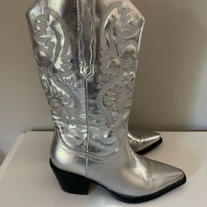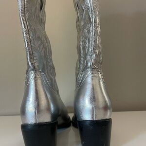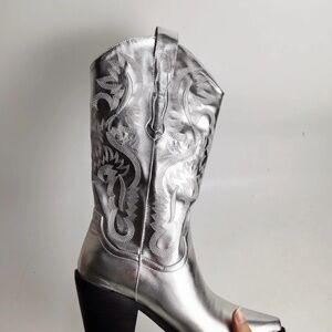 Woman Silver Embroidered Western Cowgirl Boots - Size 6