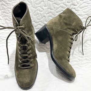 VINCE Falco Green Suede Padded Hiking Combat Military Boots Leather Heel Sz 9.5