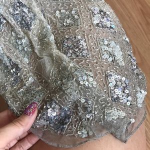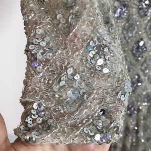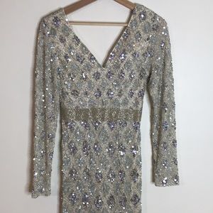 MacDuggal Lattice Sequin Long-Sleeve Gown nude sparkles size 4