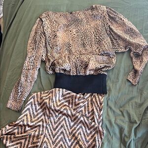 Labeled size Small (pictures of a similar outfit but different color Shown on a size 4 mannequin so you can see the fit/style). Can fit a variety of sizes depending on desired fit, please refer to measurements.