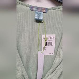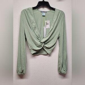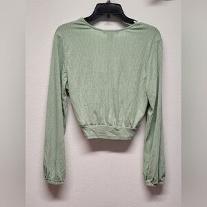 From Nordstrom Ribbed Twist Knot V-Neck Long Sleeve Womens Crop Top M Green
