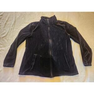 Talbots Small Black Velour Jacket Full Zip Pockets Size Large
