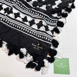 Kate Spade Cotton/Silk Black & White Tassel Scarf
