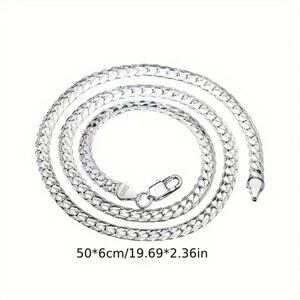 Sleek and stylish 925 silver-plated chain necklace with a durable and hypoallergenic finish. Measuring 19.69 inches in length, this adjustable chain is perfect for both men and women, adding a touch of elegance to any outfit. Ideal for everyday wear or as a thoughtful gift for special occasions.