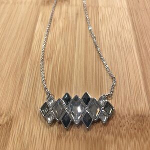 Touchstone Swarovski Checked Necklace Nightfall 18” Adjustable Necklace Rhodium