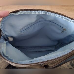Khaki colored Bagallino crossbody bag. Great for everyday use, interior zip pocket as well as outer pockets. Good condition, small discoloration as noted in last picture. Have not tried hard to remove so may be easy to clear up.