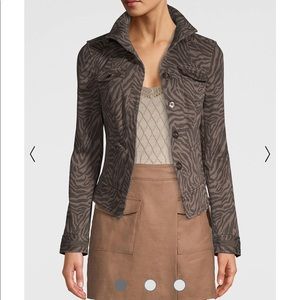 WHBM denim zebra print moto jacket