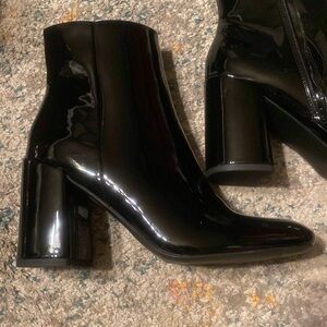 New Madden Girl While Black Patent Square Toe Boots Booties 9