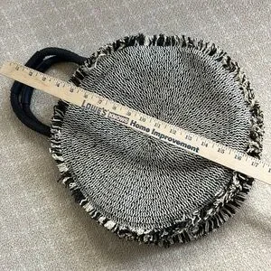 Cute circular purse by Zara. Black and cream straw. Black handles.