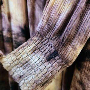 Top is in good condition. It has a few loose threads because there are a lot of stiches in this top. One small pull in front of shirt as shown in photos. The pattern of the tie dye conceals it well!