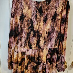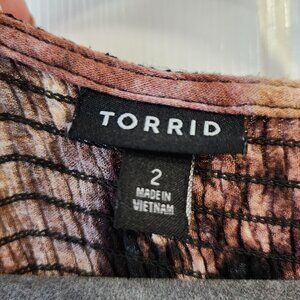 TORRID Tie Dye Babydoll Long Sleeve Crinkle Gauze Smocked Top Size 2